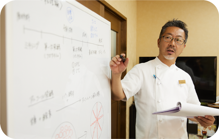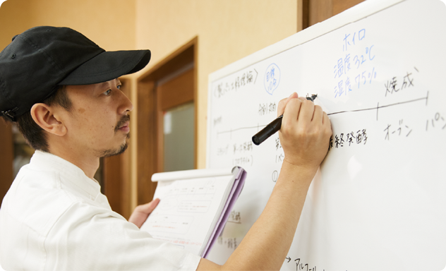店舗が完成した後、開業支援トレーナーが店舗に訪れ、2日間の事前研修を実施します。オープン日を含めて3日間、仕込みから製造、売り場の運営に至るまでのフォローを行います。