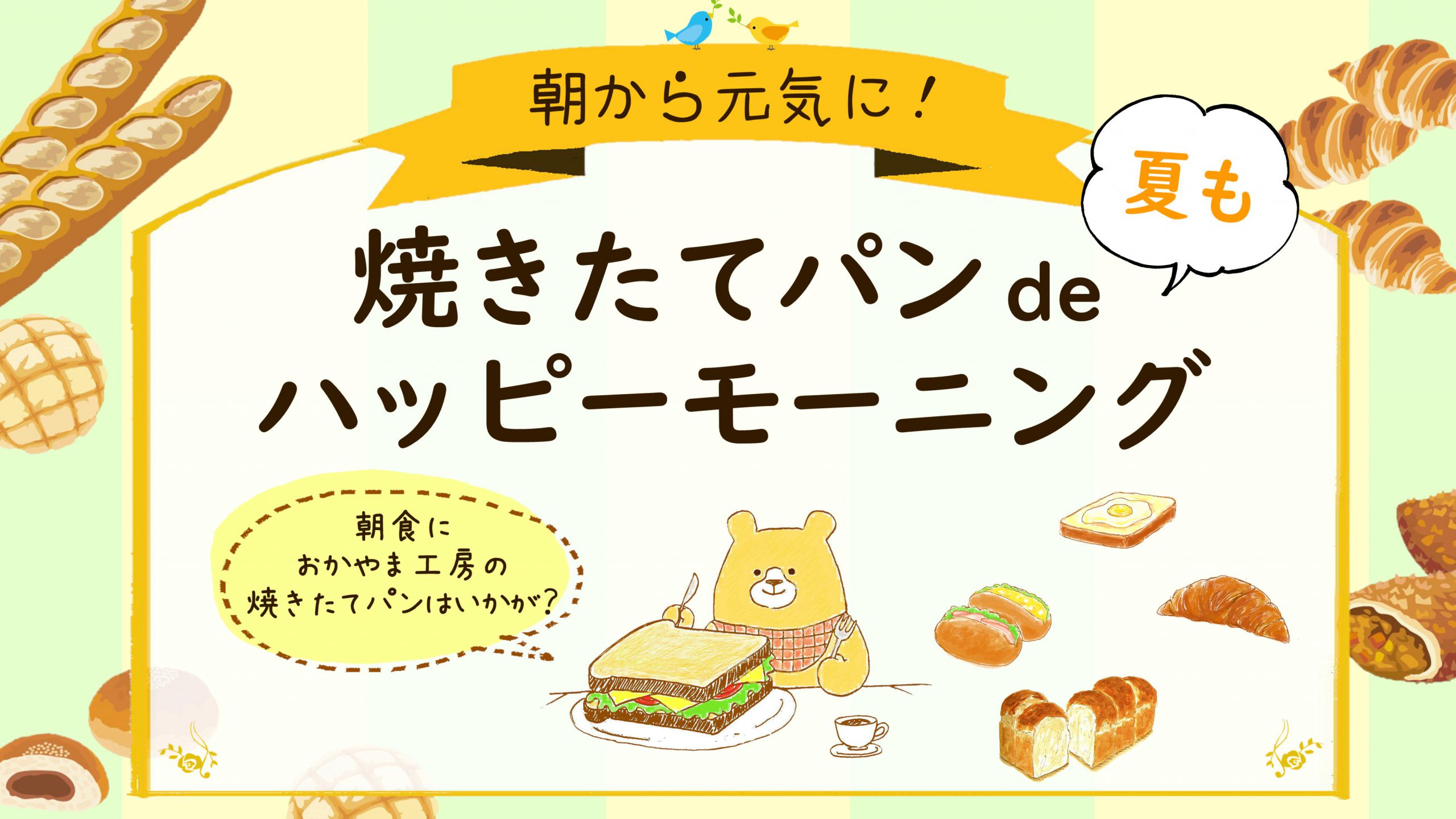 2021.08.07 【お知らせ】 イベント情報 “夏も”焼きたてパンdeハッピーモーニング いつもご利用いただきありがとうございます! 暑い日が続きます…。そんな日は朝活!パン活! 大好評だった“ハッピーモーニング”が期間限定で復活します★ □期間 2021.8.10~2021.8.22 □内容 開店から朝9時までパンが20%OFFに。 期間中、毎日がおトク! ※ジャム、ドリンク、雑貨類は割引対象外です。 暑さは朝から焼きたてパンで吹っ飛ばせ!! ご来店を心よりお待ちしております。