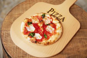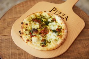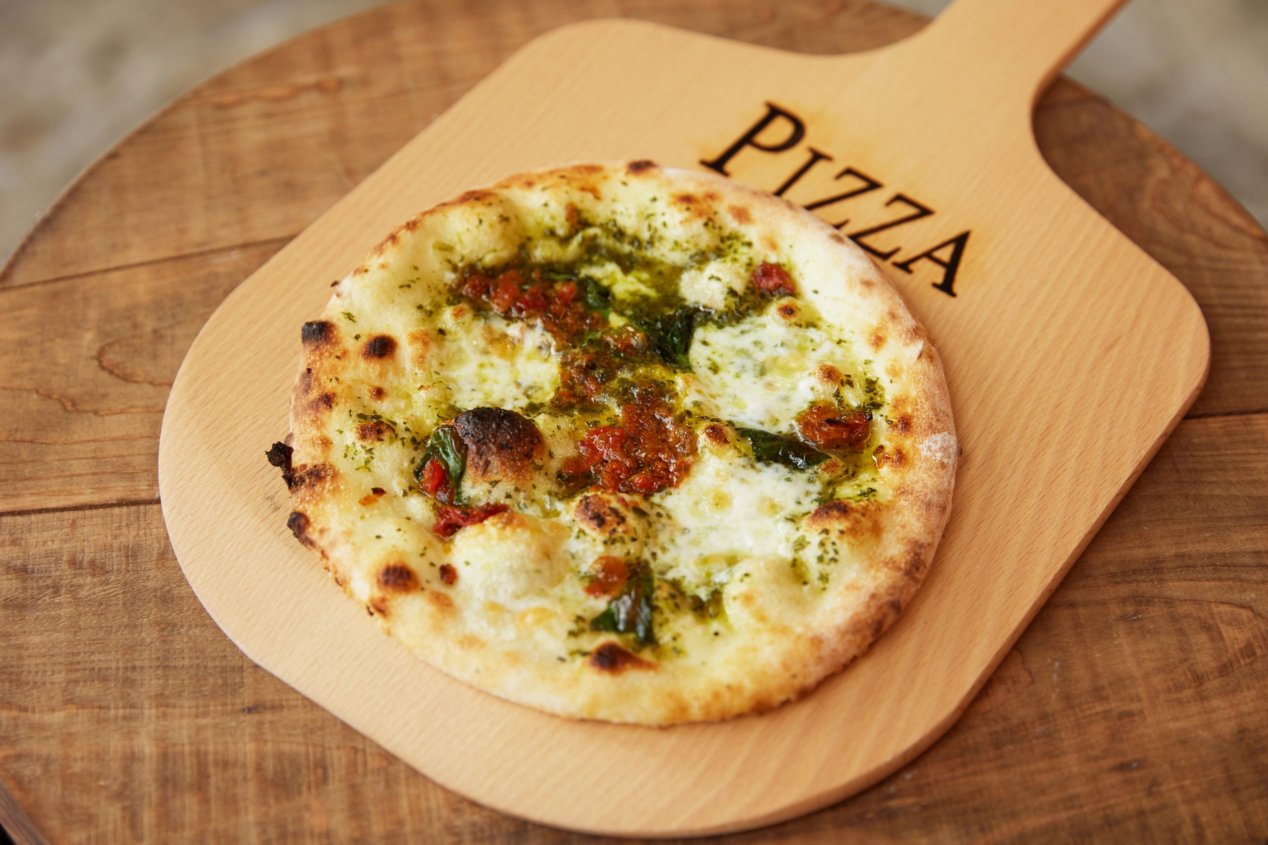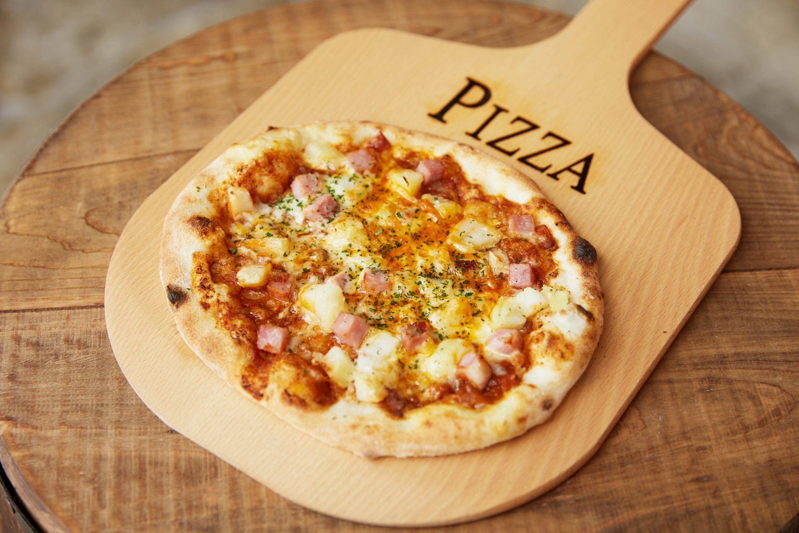 もちもちの米粉生地にトマトソース・コーン・べーコ ン・ピーマンと豆乳チーズをのせて焼き上げました。