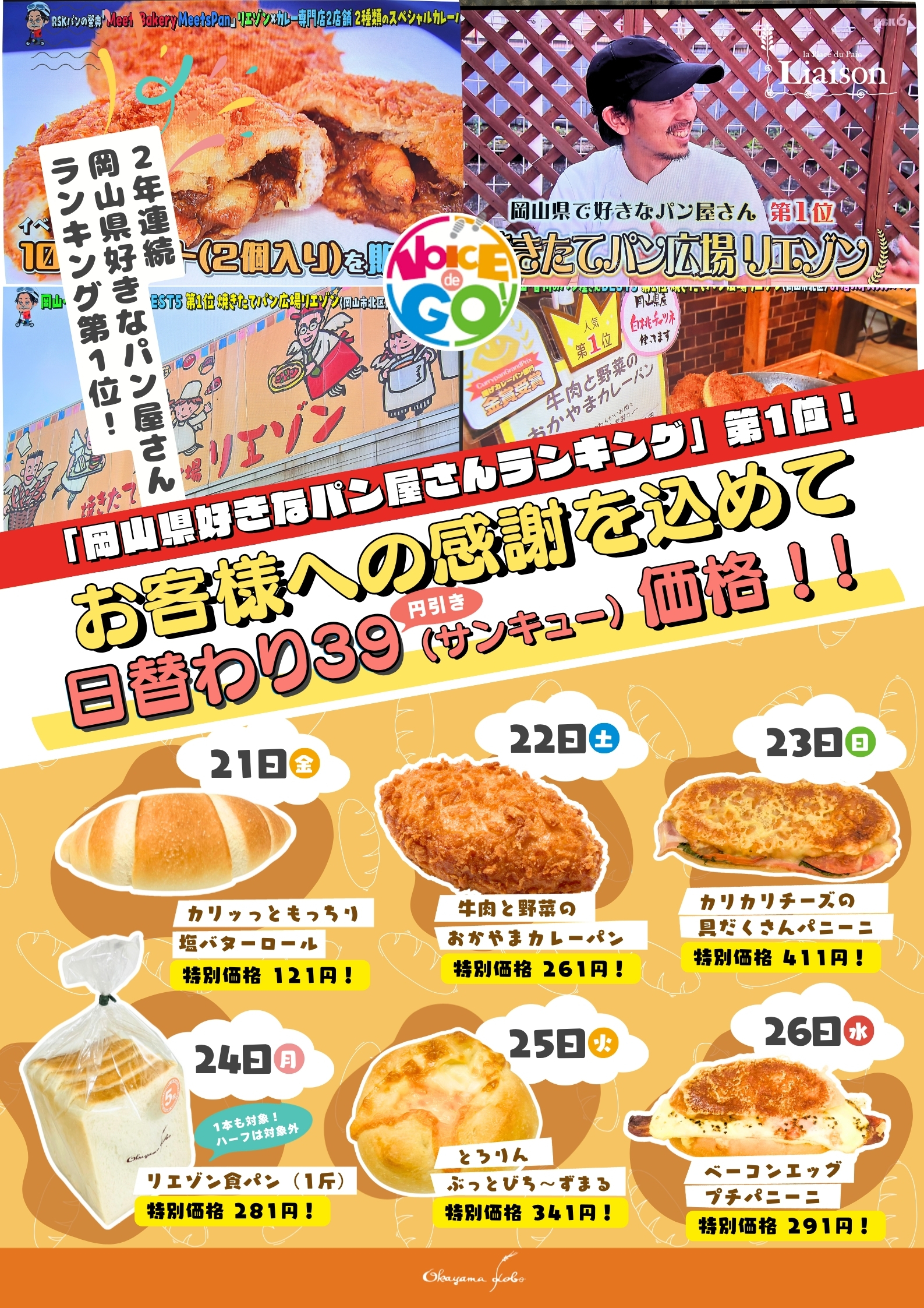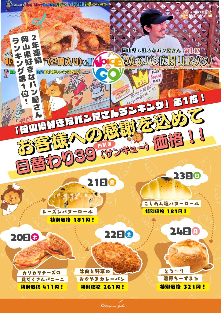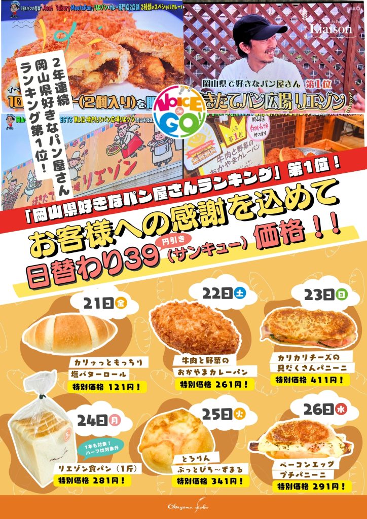 RSK「VOICE de GO!」岡山県で好きなパン屋さんランキング 2年連続第1位獲得!感謝祭開催のお知らせ